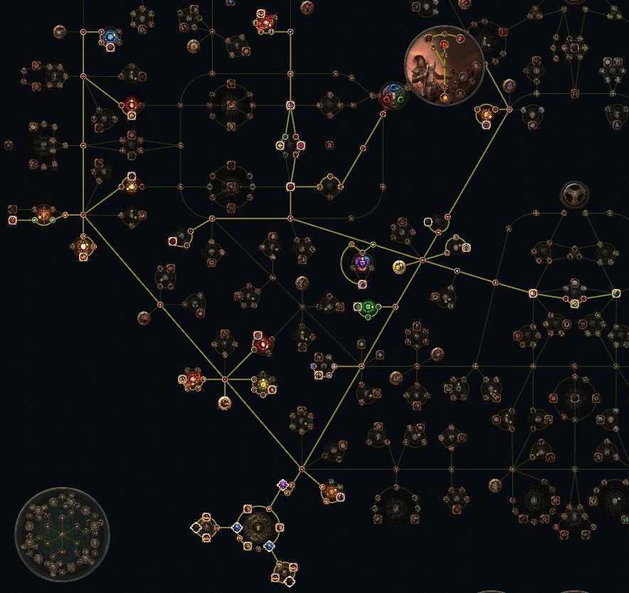 На данный момент в дереве есть шесть слотов для кластерных самоцветов (в конце каждой крупной ветки). Выбрать все шесть веток одновременно нельзя (для этого требуется гораздо больше очков, чем может получить отдельно взятый персонаж), но если бы это было возможно, некоторые билды строились бы исключительно на самоцветах.