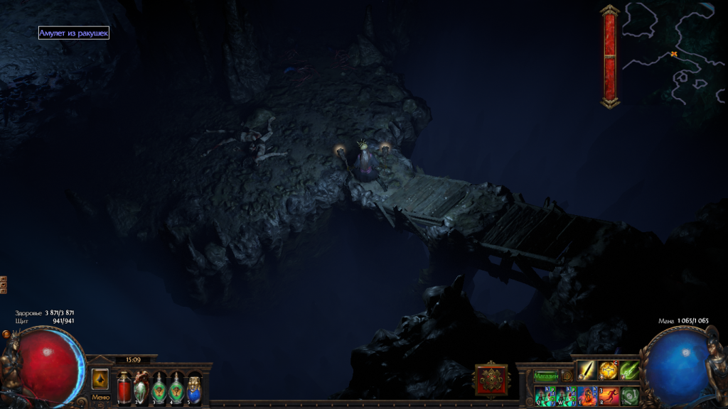 Телепортируемся в Сырой проход. В нём мы должны найти выход в Утёс. Проход к нему идёт через такой мост: