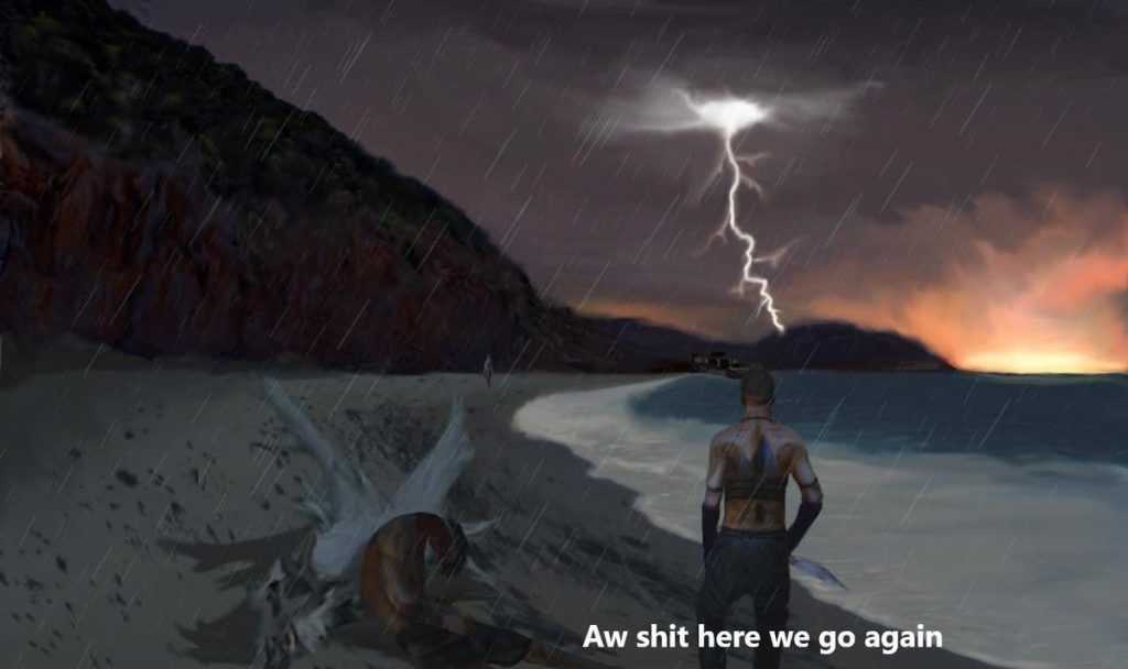 Далее выходим на побережье. Бежим через локацию до вейпойнта. На нём будет развилка — нам нужно в Илистые низины.