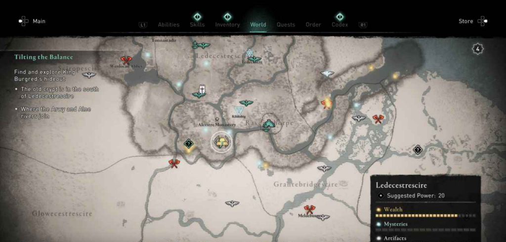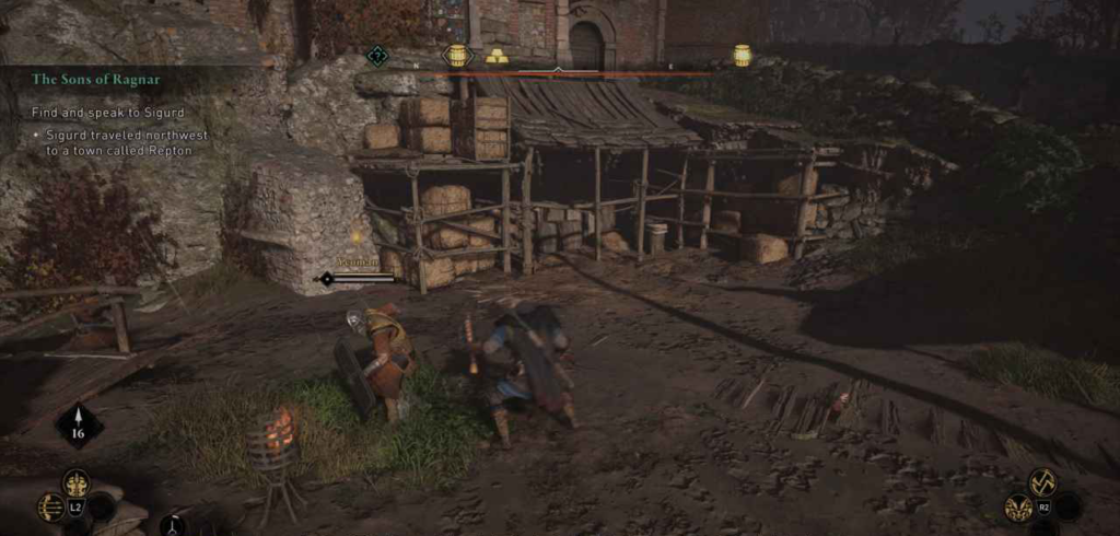 Второе поручение связано с Келлским аббатством. Для выполнения дополнительной просьбы вначале разберитесь с двумя противниками, не используя союзников. Затем совершите набег на данный объект. Тут будут 4 сундука с 280 припасами. Обойдите главное здание и найдите открытое окошко. Выстрелите через него в засов двери. Затем войдите в постройку, пройдите через открывшуюся дверь и возьмите книгу знаний «Приветствие викинга».