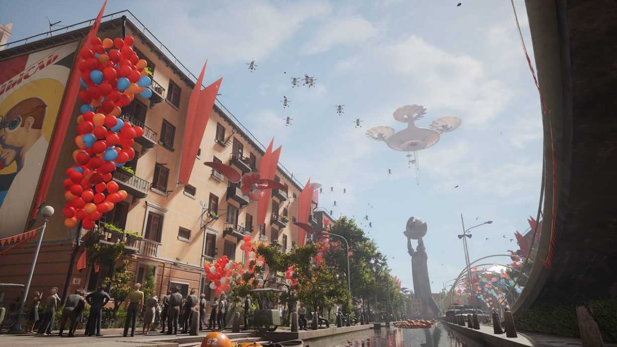 Так вот, 1955 год. Нам отводится роль майора Сергея Нечаева. Мы прибываем на праздник в честь скорого запуска глобальной системы «Коллектив 2.0». Она позволяет управлять роботами силой мысли.