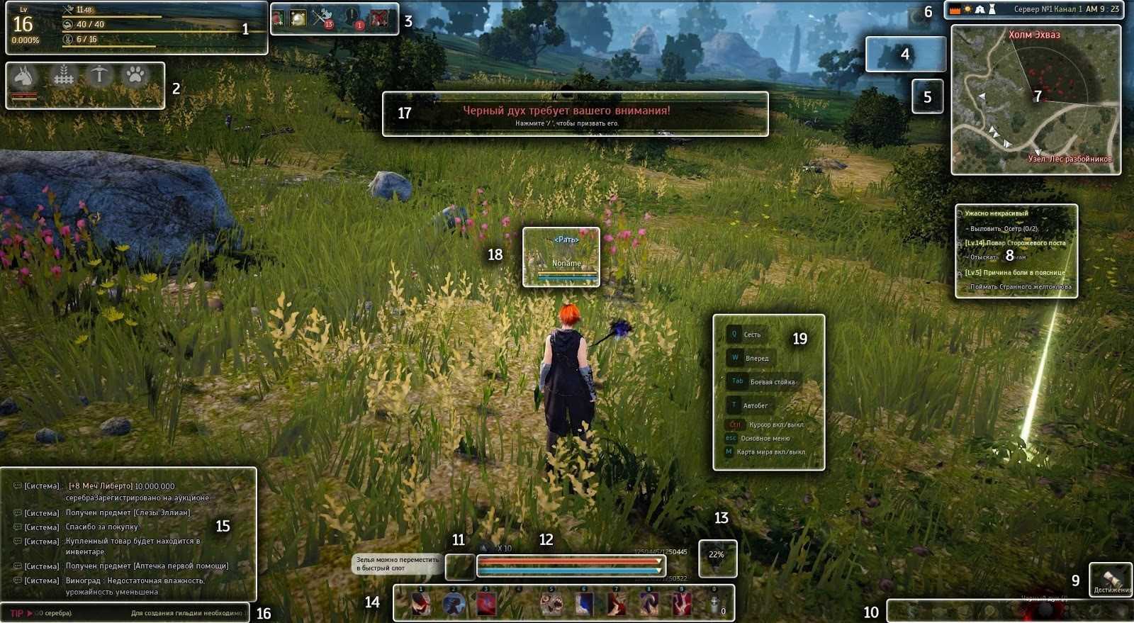 17.Здесь будут показаны такие уведомления, как: возможность изучения некоторых способностей, выполнение какого-либо задания, объявление войны гильдий и тому подобные.
