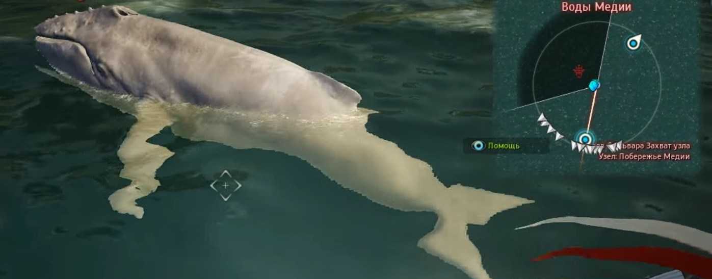 Для охоты на кита вам понадобится лодка и помощь товарища, который будет ей управлять. Поэтому необходимо сразу договориться о порядке действий. Чтобы активировать охоту на Кита вам нужно нажать на крест, который загорится красным если кит будет близко. Убив моба, подберитесь к нему и соберите лут. Следующий Кит появится через сутки.