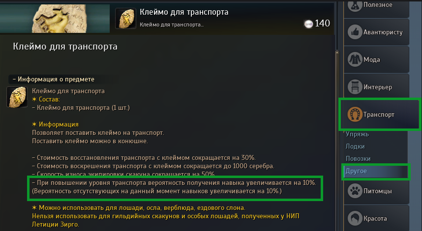 Клеймо для транспорта повышает шансы на взятие навыков у лошадки. Ожидаемый профит такой же как и от сбруи для скакуна из игрового магазина: +10% к шансу получить навык.