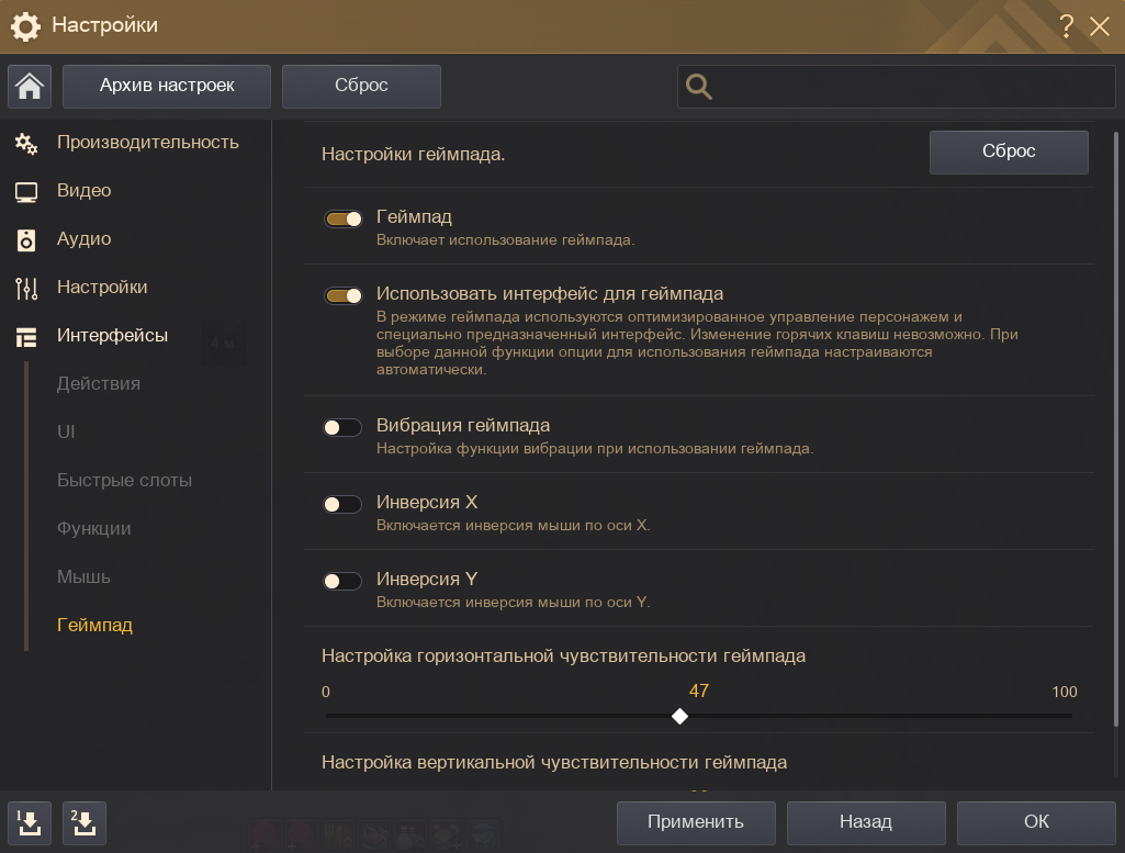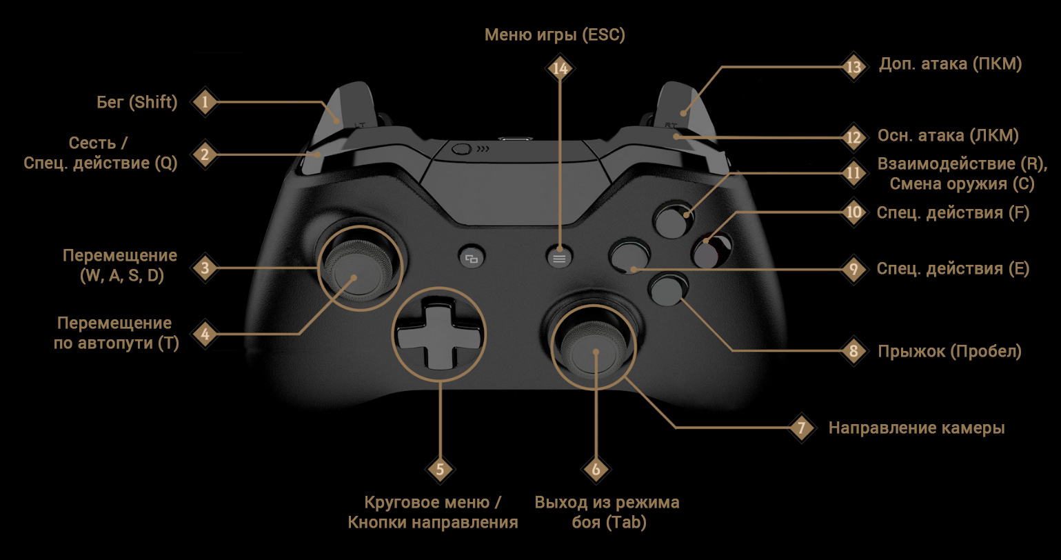 Можно настроить кнопки геймпада по вашему удобству, однако доступно только ограниченное использование некоторых интерфейсов, таких как основные функции по управлению персонажем и быстрые слоты.