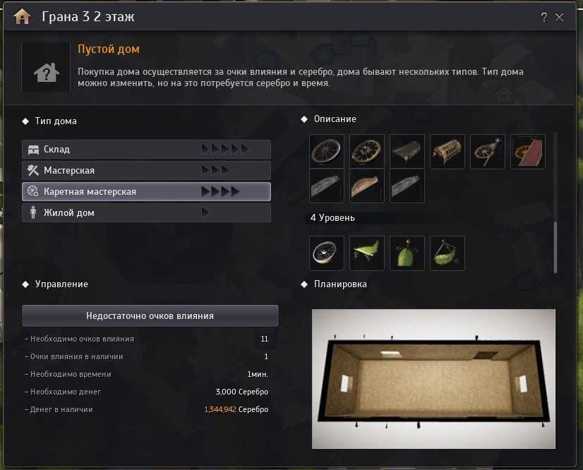 Вы можете нажать на любой из значков синих домов на карте чтобы посмотреть, какой это будет тип жилья. Большинство домов позволят вам выбрать, как он будет функционировать. Например, дом 2-1 в Велии, показанный выше, имеет четыре различных варианта использования. Если вам нужно это место, вы можете выбрать между складом, переработкой, деревянным верстаком и жилым домом. Вы также сможете заранее увидеть план помещения , чтобы принять решение.