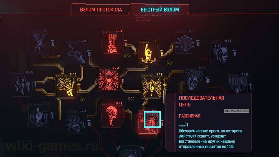 Навыки в характеристике Интеллект, в разделе Быстрый взлом.