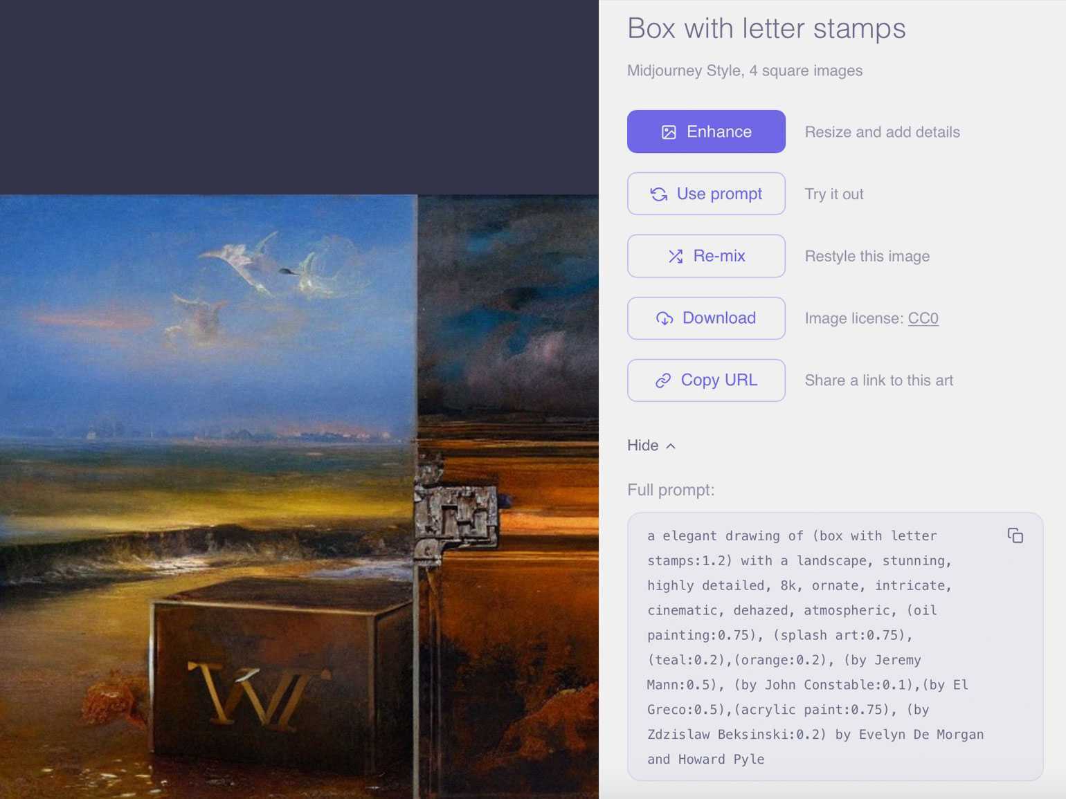 NightCafe удобна для начинающих и имеет простую в использовании использовать интерфейс. Просто войдите в свою учетную запись NightCafe, создайте свою работу и создайте уникальную ссылку, чтобы опубликовать свою работу и выставить ее на продажу на других платформах.