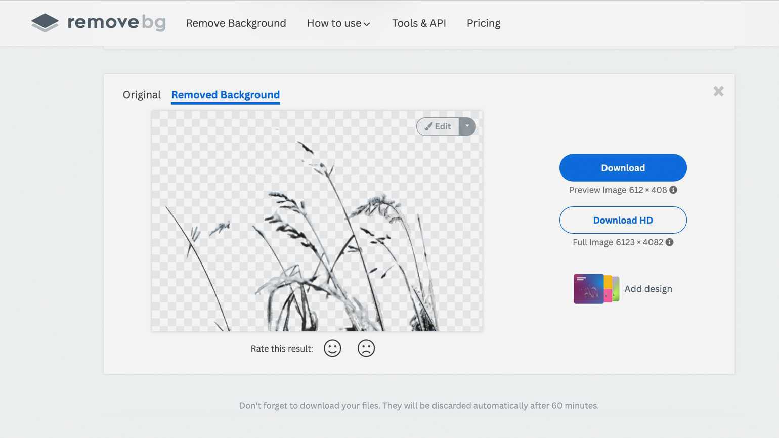 С травинками в инее на фоне серого зимнего неба этот сервис справился не очень хорошоСкриншот: сайт remove.bg / Anita Austvika / Unsplash / Skillbox Media