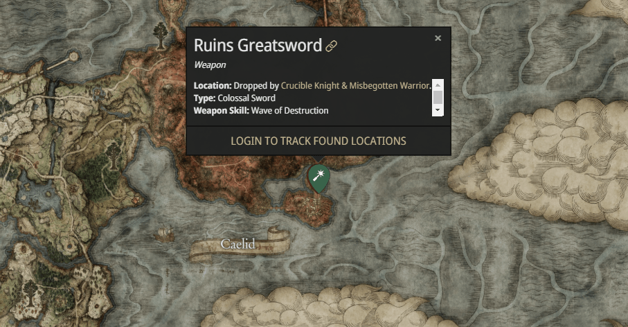 Данный меч открывается после победы над боссом Радан Бич звёзд, который станет занозой в седалище начинающего странника. После сражения с гигантом вам нужно вернуться в локацию, что на скриншоте выше.