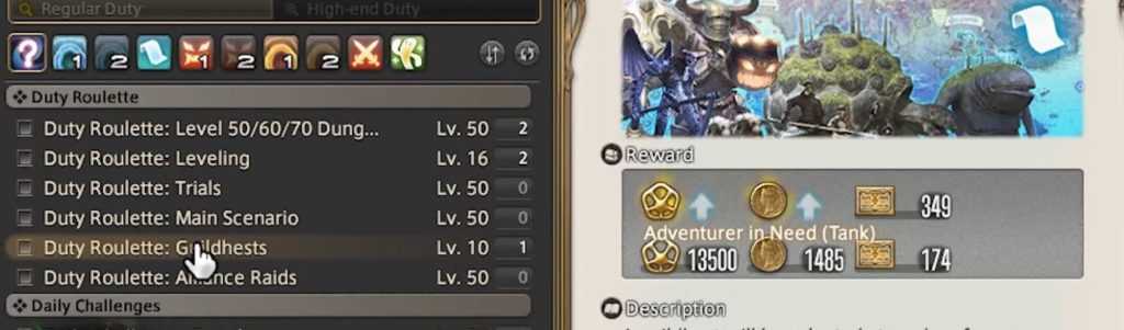 Make sure you join the right roulettes if you focus on ranking up in Grand Company, as there are only two of them that grant seals – Leveling Roulettes and Guildhests Roulettes. You will get the chance to play roulette once a day. But, if you play as an Adventurer in Need, you can gamble an infinite number of times.