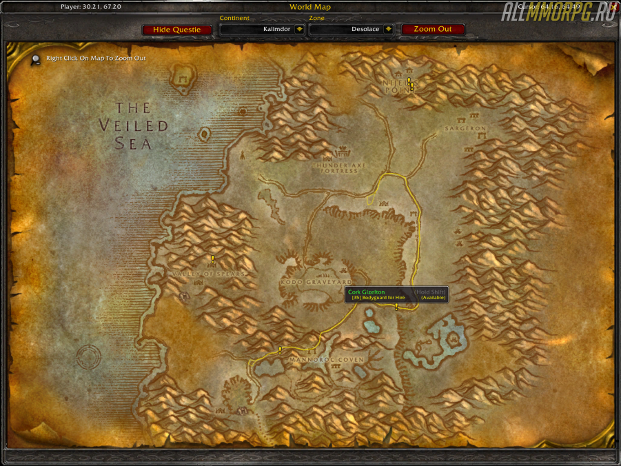 | 1 | 75 | Степи, Глубины Черных Пучин, Остров Кровавой Дымки, Темные берега, Дарнас, Мертвые копи, Призрачные земли, Стальгорн, Лох Модан, Оргриммар, Серебряный бор, Штормград, Громовой Утес, Подгород, Пещеры Стенаний, Западный край |