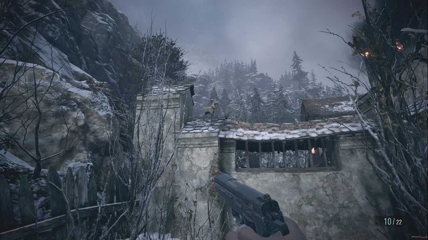 Крушение произошло под деревней где-то в Восточной Европе. Конкретными странами разработчики не вдохновлялись, но наши сёла с покосившимися избушками вспоминаются сразу. С одной стороны, это умиротворяет, все такое уютное и родное. С другой — по деревне вообще-то скачут оборотни, а большую часть жителей уже порвали на части. Что тут произошло, Итану только предстоит выяснить. И по доброй традиции Resident Evil, это имеет прямое отношение к главному герою.