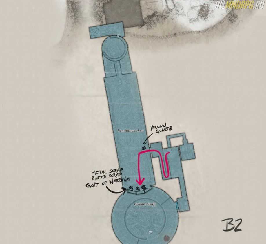 - Ржавый лом — этот находится на северной стороне камеры, спуститесь и увидите его на полу.