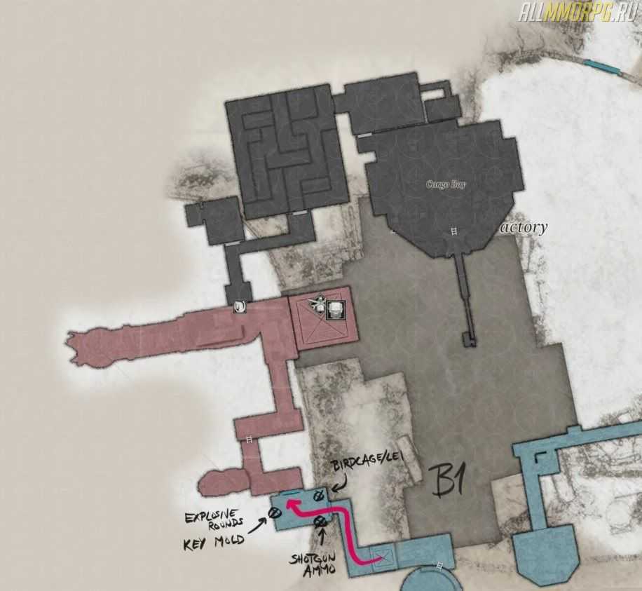 Поднявшись на лифте, идите по коридору. В первой комнате заберите монеты (справа), патроны для дробовика в шкафу и на западе комнаты – фугасные снаряды. В кейсе на столе лежит шаблон для ключа.