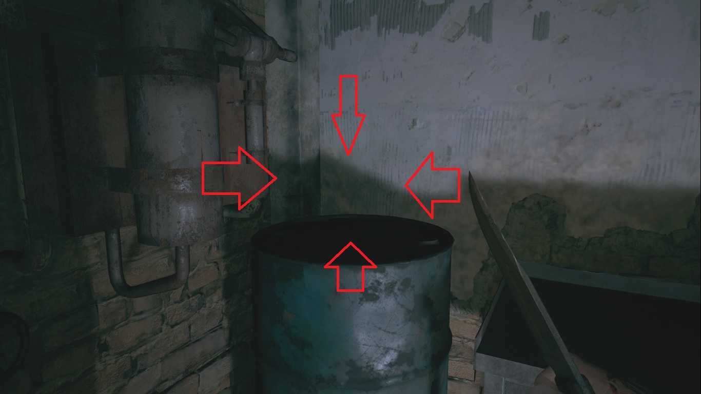 - Порох — на бочках с маслом рядом с ржавым ломом, который вы только что нашли.
