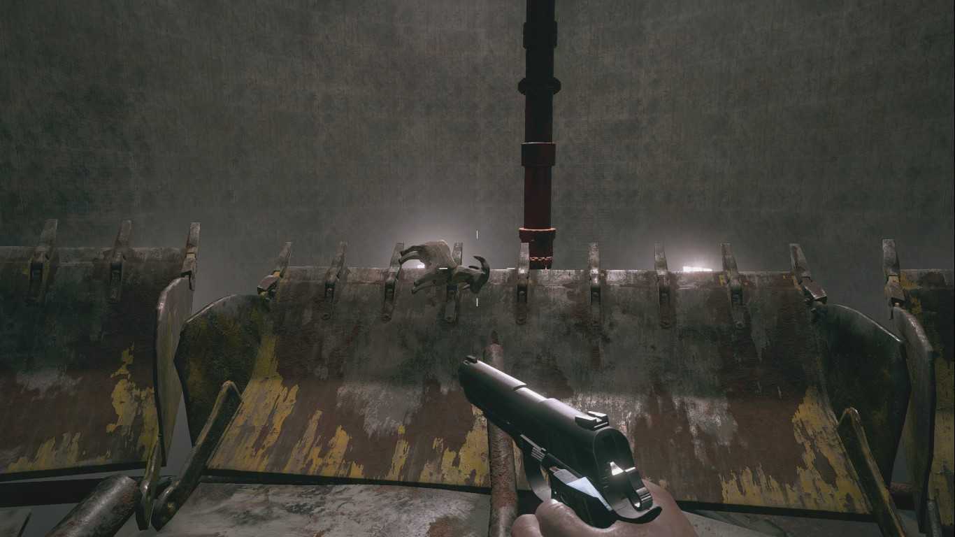 Дальше по сюжету вас начнёт затягивать огромный вентилятор. Снова стреляйте по лампам, чтобы его замедлить. Пролезьте мимо лопастей в шахту. За ним будет лифт. На верхнем этаже найдете шаблон ключа и боеприпасы.