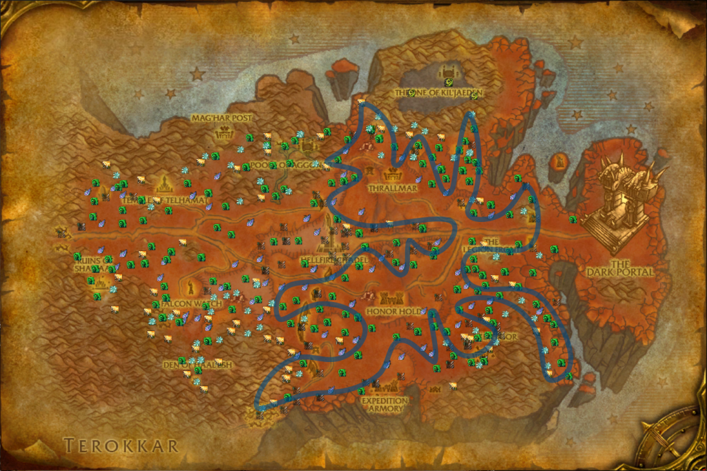 В начальных локациях Запределья можно найти некоторые травы, которые вы уже видели в Калимдоре или Восточных королевствах. Продолжайте собирать их, чтобы немного прокачать свое ремесло. Мы рекомендуем оставаться на Полуострове Адского Пламени до тех пор, пока вы не достигните 325 уровня навыка травничества. В этой зоне вы можете собирать следующие растения: