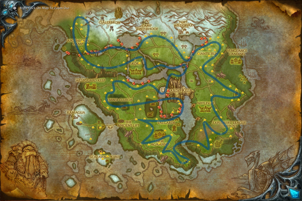It might be a good idea to plan ahead for any possible crafting professions you may take on — you may want to strategically gather specific nodes to support this future craft. If you’re gathering simply for the sake of gold, then you can also check out Auction House prices to see if any of the old-world mats you pick up along the way are worth anything.