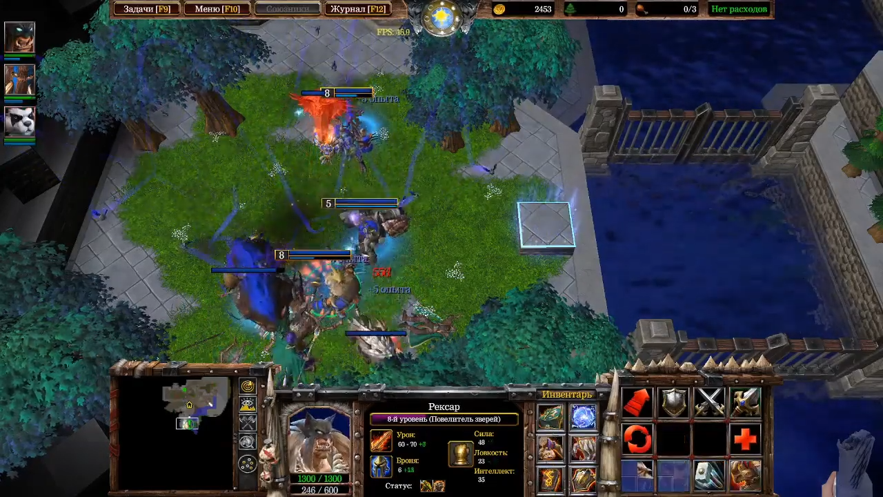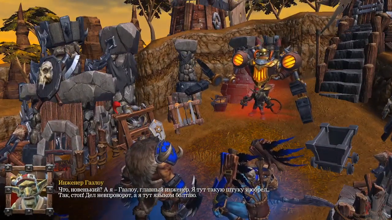 Вы снова вернетесь к Вол-Джину, потом пообщаетесь с Траллом и узнаете, что он вовсю готовится к войне. Вождь попросит вас найти ингредиенты для зачарования боевого знамени — они будут подсвечены на карте, сложностей не возникнет. После этого вам нужно будет вместе с силами орков напасть на базу Праудмура и уничтожить его замок. Вы сможете набирать войска с базы и покупать юнитов в специальных зданиях. Особых хитростей тут нет — просто продавливайте противника, используя мощь героев.