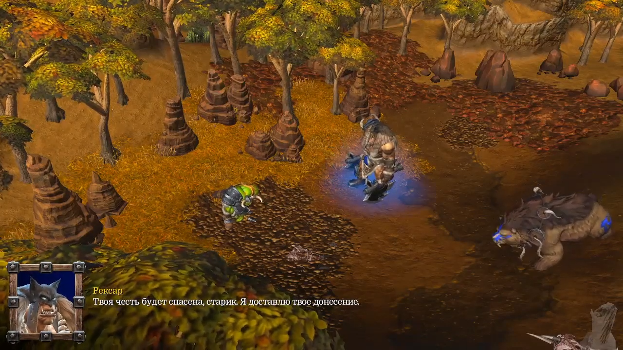 Вы удивитесь, но кампанию орды мы будем проходить совсем не за Тралла. Главным героем станет Рексар — приручитель зверей, наполовину орк, наполовину огр. Мы познакомимся с ним, когда он будет наблюдать крушение дирижабля, переглядываясь со своим огромным медведем. Из дирижабля выпадет гонец, который должен доставить письмо Траллу. На смертном одре он попросит Рексара выполнить это задание. Тот согласится и отправится в путь.