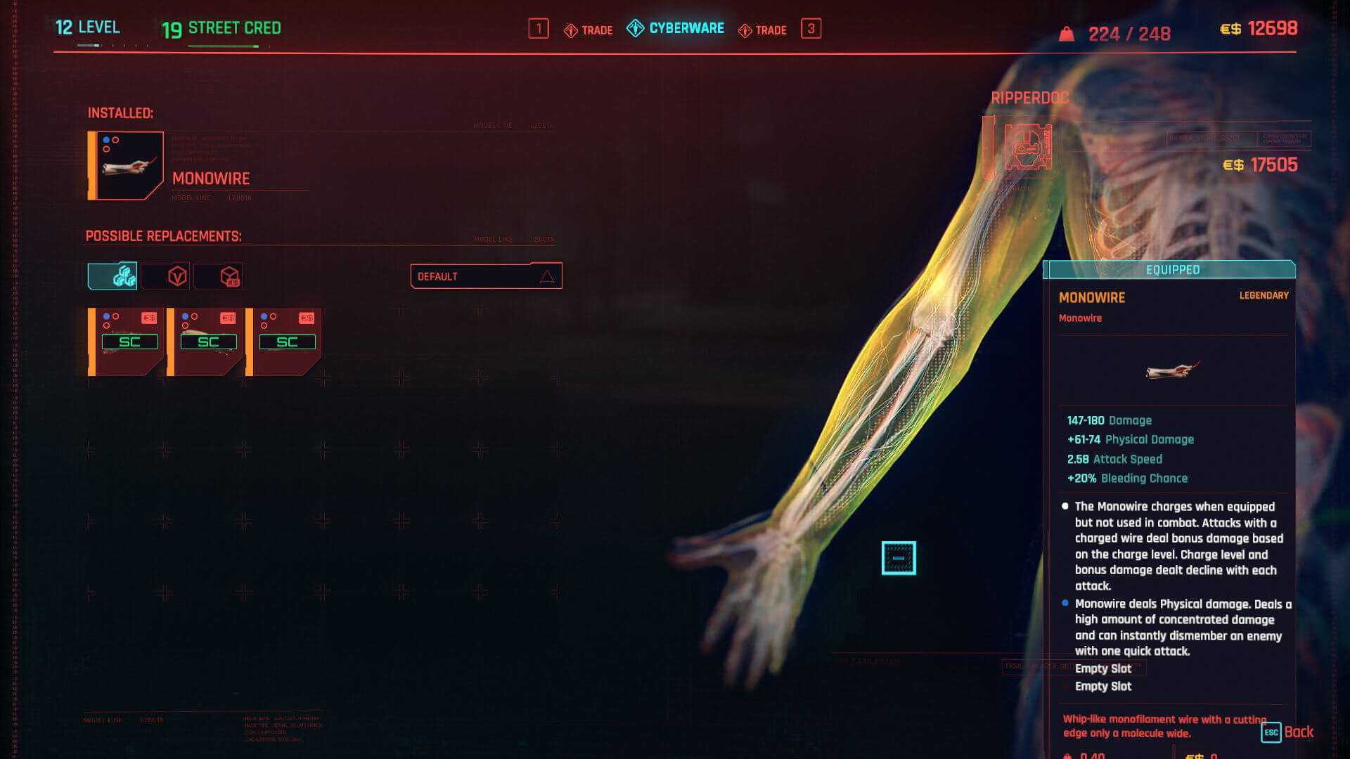 Here are some notable cyberware and mods that you can find at this ripperdoc.