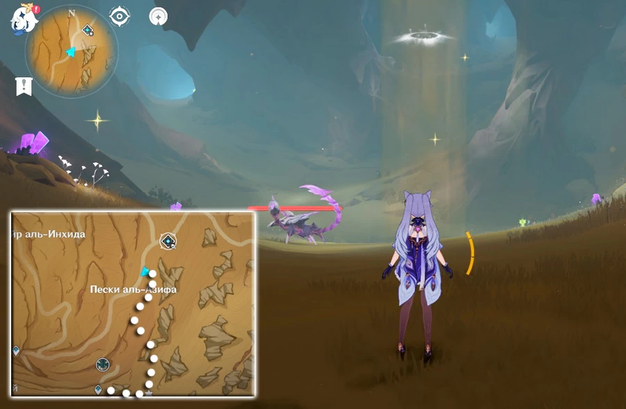 Достигнув локации, нажмите на гаджет Сеть всевездесущности, чтобы заменить элементальный навык. Затем удерживайте кнопку «Элементальный навык», чтобы навести сеть на целевое животное. Наконец, отпустите кнопку, чтобы захватить его.