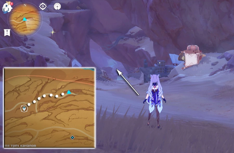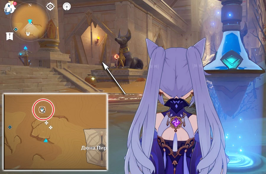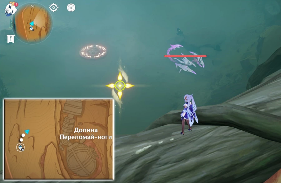 Во-первых, игроки Genshin Impact должны экипировать Сеть всевездесущности из инвентаря на вкладке Гаджет. Обратите внимание, что этот предмет является расходным гаджетом. Другими словами, одну универсальную сеть можно использовать только для поимки одного маленького существа. Телепорт к Статуе Семи к северу от гавани Ли Юэ (Изображение с Genshin Impact)