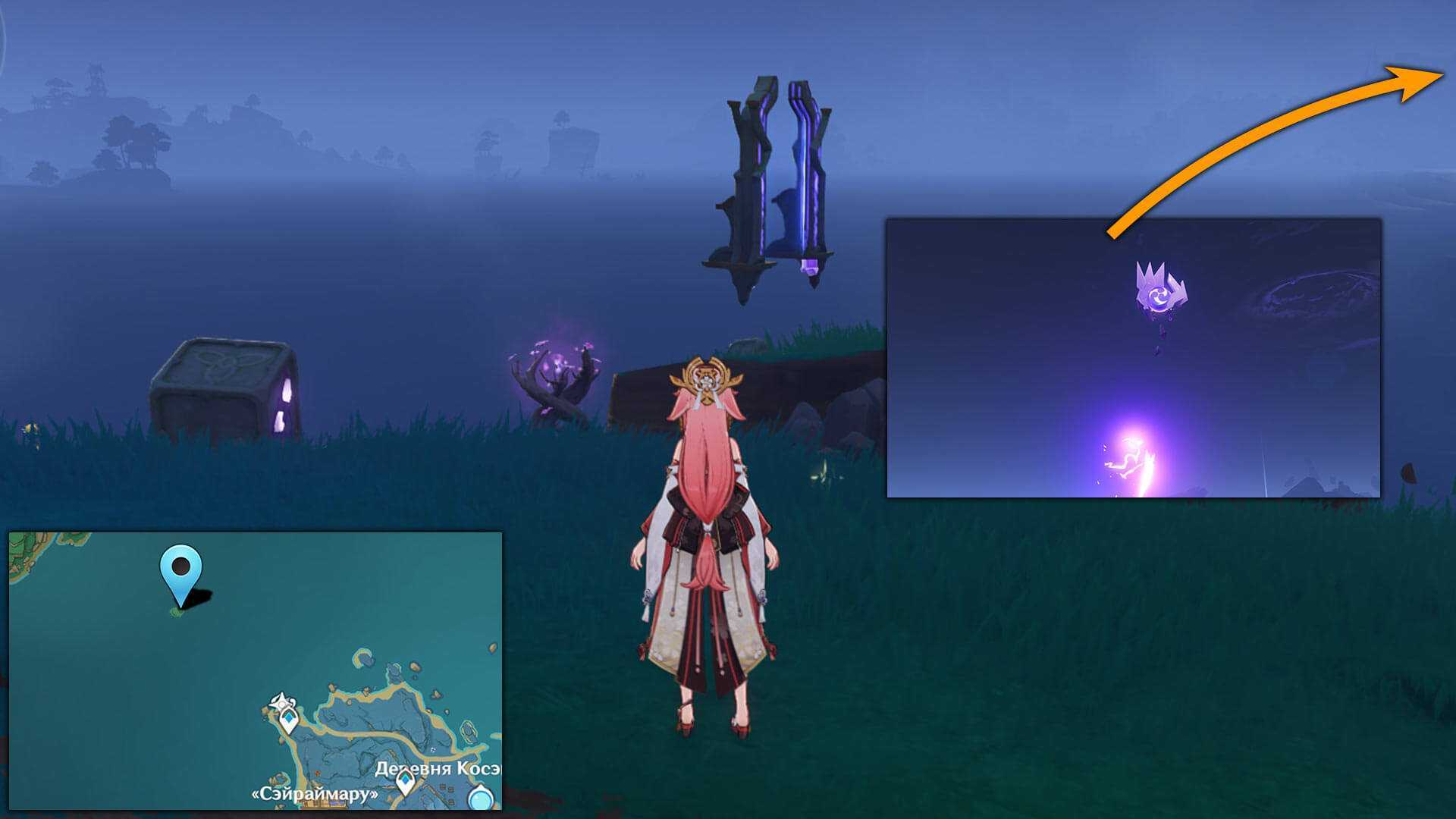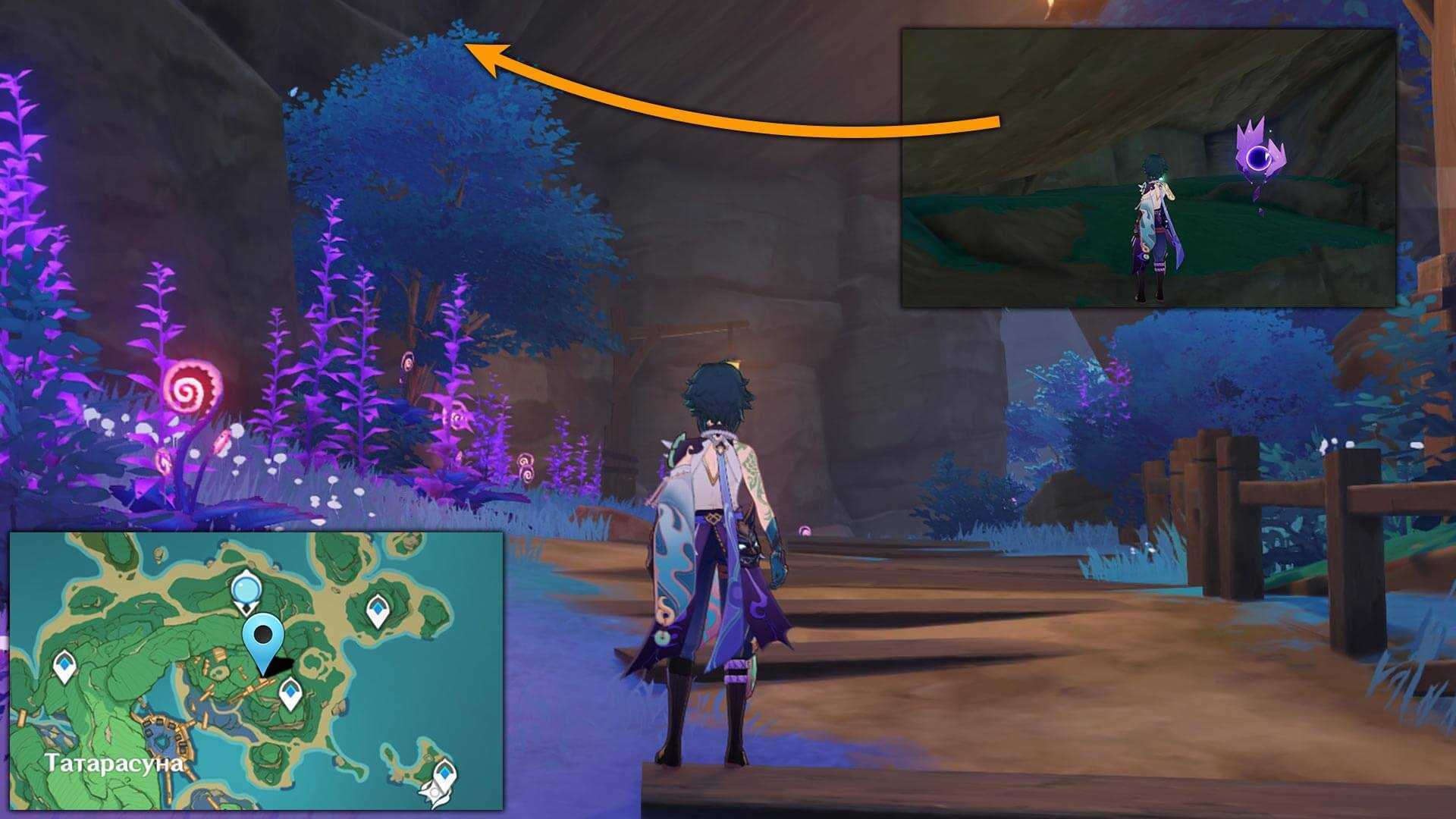 Следующие Электрокулы на острове Каннадзука можно собрать только после разрушения защитного купола в задании Сказания из Татары. Чтобы было проще исследовать Татаригами, рекомендуется полностью завершить цепочку заданий и убрать Электро аномалию, наносящую урон.