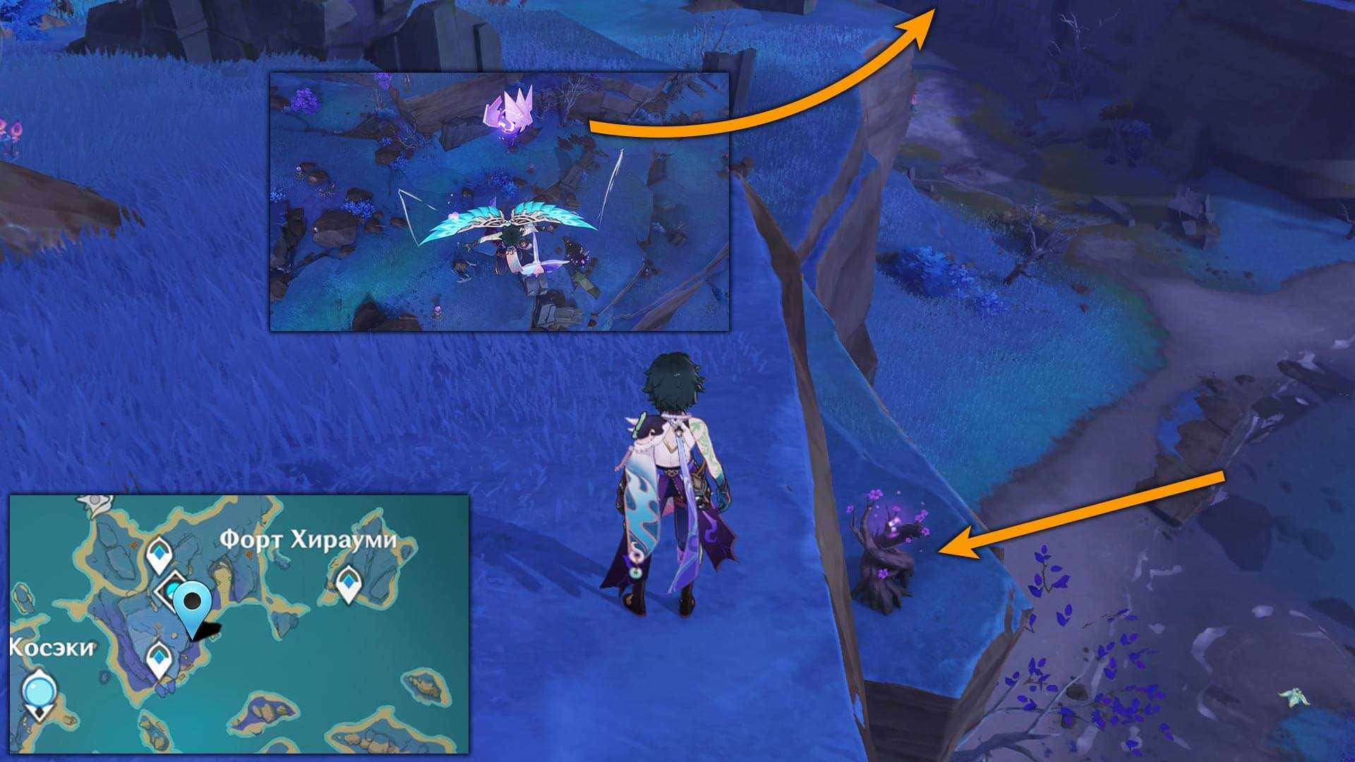 5. Электрокул летает очень высоко в небе. Добраться до него можно с помощью Электрогранума. Ветвь Громовой сакуры находится в пещере возле второй части корабля Сэйраймару. В гайде по прохождению корабля есть подробное описание, как решить головоломку с релейными камнями и забрать Электрокул.