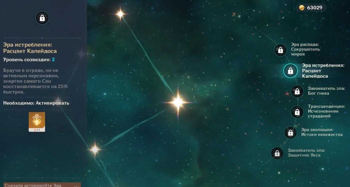 - Эра истребления: Расцвет Калейдоса – энергия восстанавливается на 25% быстрее для Сяо в группе, не являющегося активным;