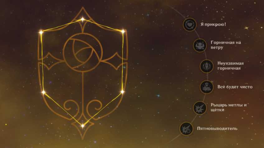 - Рыцарь метлы и щётки. Увеличивает уровень навыка Генеральная уборка на 3. Макс. ур.: 15.