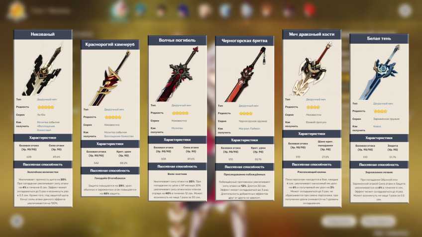 - Некованный (5-звездочный) – повышает прочность щита на 20 процентов. После получения урона показатель атаки персонажа увеличивается на 4 процента на 8 секунд. Эффект складывается до пяти раз и проявляется раз в 0,3 секунды. Этот двуручный меч крайне полезен, когда в команде имеется персонаж, способный накладывать щит.