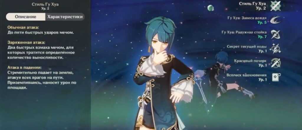 Добавим, что остальные две пассивки героя («Секрет текущей воды» и «Красивый почерк») лечат активного героя после исчезновения мечей дождя и повышают Гидро урон Син Цю на 20 процентов.
