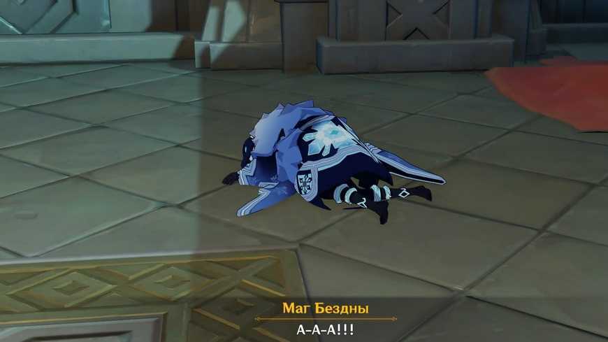 Старайтесь уворачиваться от его атак, чтобы не допустить заморозки и потери драгоценных секунд. Без щита добивайте Мага Бездны любым удобным способом. К нему в поддержку подоспеет большой Электро слайм , вовремя покидайте зону его атакующего прыжка. Электро слаймы очень не любят Пиро-атак , поэтому персонаж с данной стихией сможет очень быстро с ним расправиться.