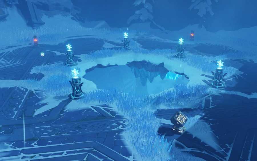 После активации последнего ледяного шара все фрагменты столба сложатся, и столб поднимется из центра пещеры в небо. Начнется финальная часть миссии «В горах».