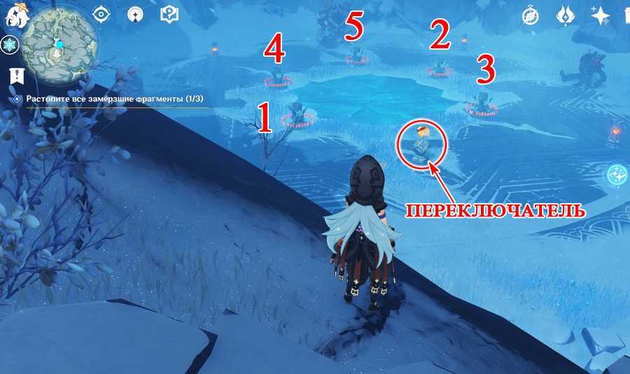 Включите выключатель. При этом сидящая на нем фея тепла будет двигаться. Наблюдайте за его полетом. Он укажет последовательность, в которой необходимо «включить» тотемы с криогероем и разблокировать их.