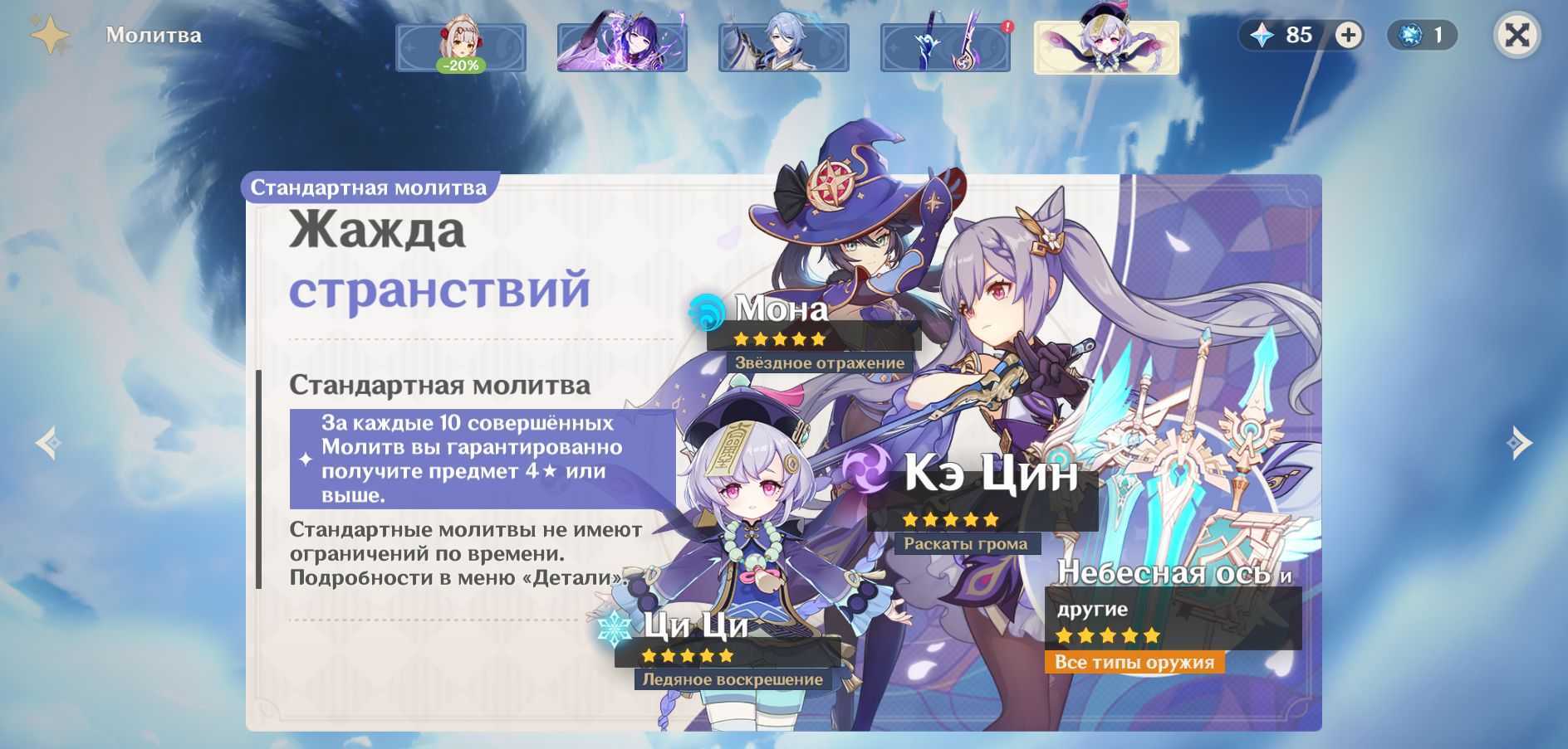 Вместо этого молитесь только тогда, когда на баннере присутствуют несколько понравившихся вам предметов. Если вы терпеливо хранили ваши Камни Истока и дождались, когда появится понравившийся вам персонаж (например, Чжун Ли), то тогда при выпадении предмета 5* ваша вероятность на успех будет целых 60% (50% на Чжун ли и 10% на Кэ Цин). Если вы ещё хотите несколько предметов 4*, то вообще замечательно!