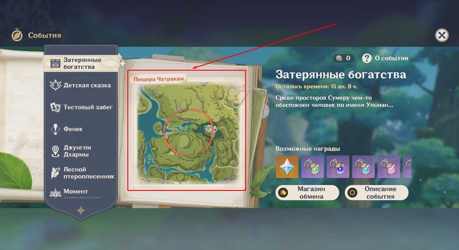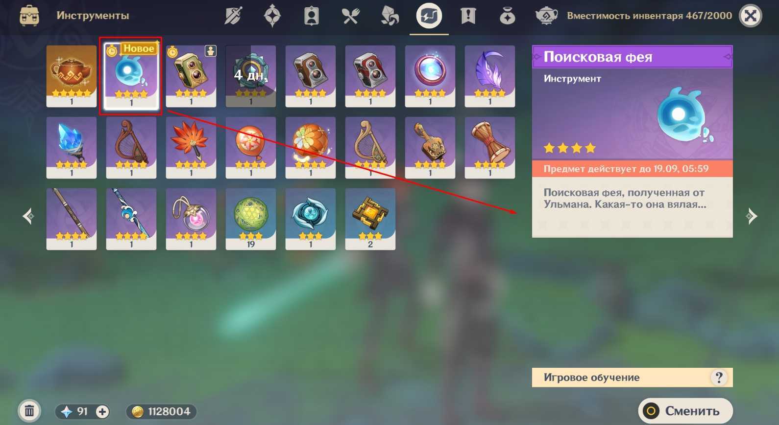 Каждый день в течение недели будет разблокироваться новая область Сумеру, в пределах которой игрок должен отыскать определенное количество сокровищ. Поможет ему в этом ивентовый инструмент «Поисковая фея». Экипируйте его из инвентаря, чтобы использовать для поиска ценностей.