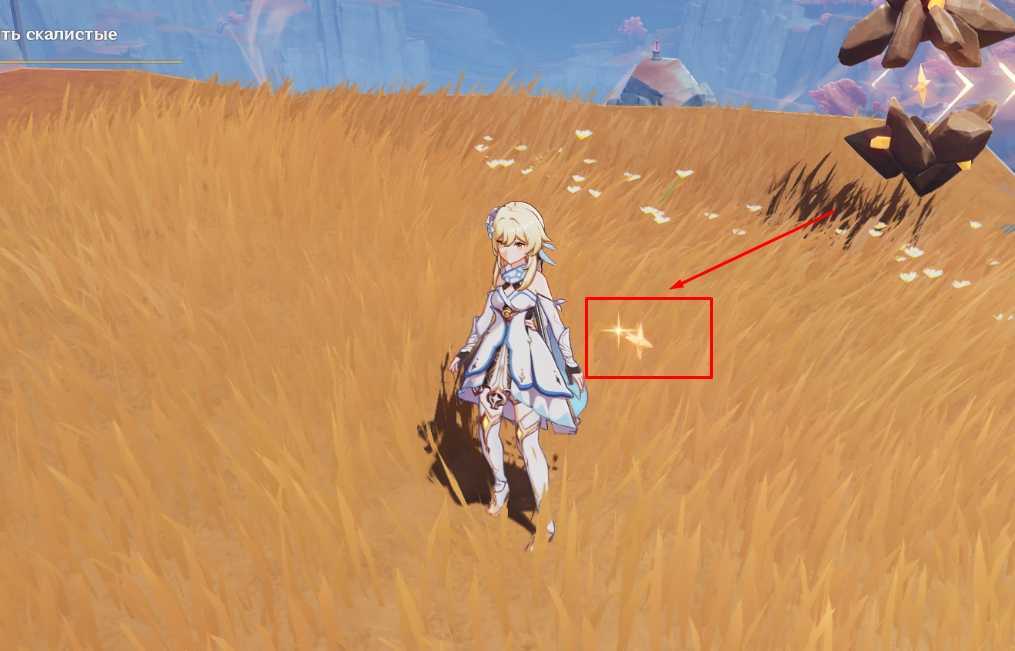 | Подойдите к особой Гео руде разбейте ее с помощью стихийных способностей Гео героя. После разрушения руды вокруг персонажа будет в течение некоторого времени летать маленькая звездочка | ![]() |