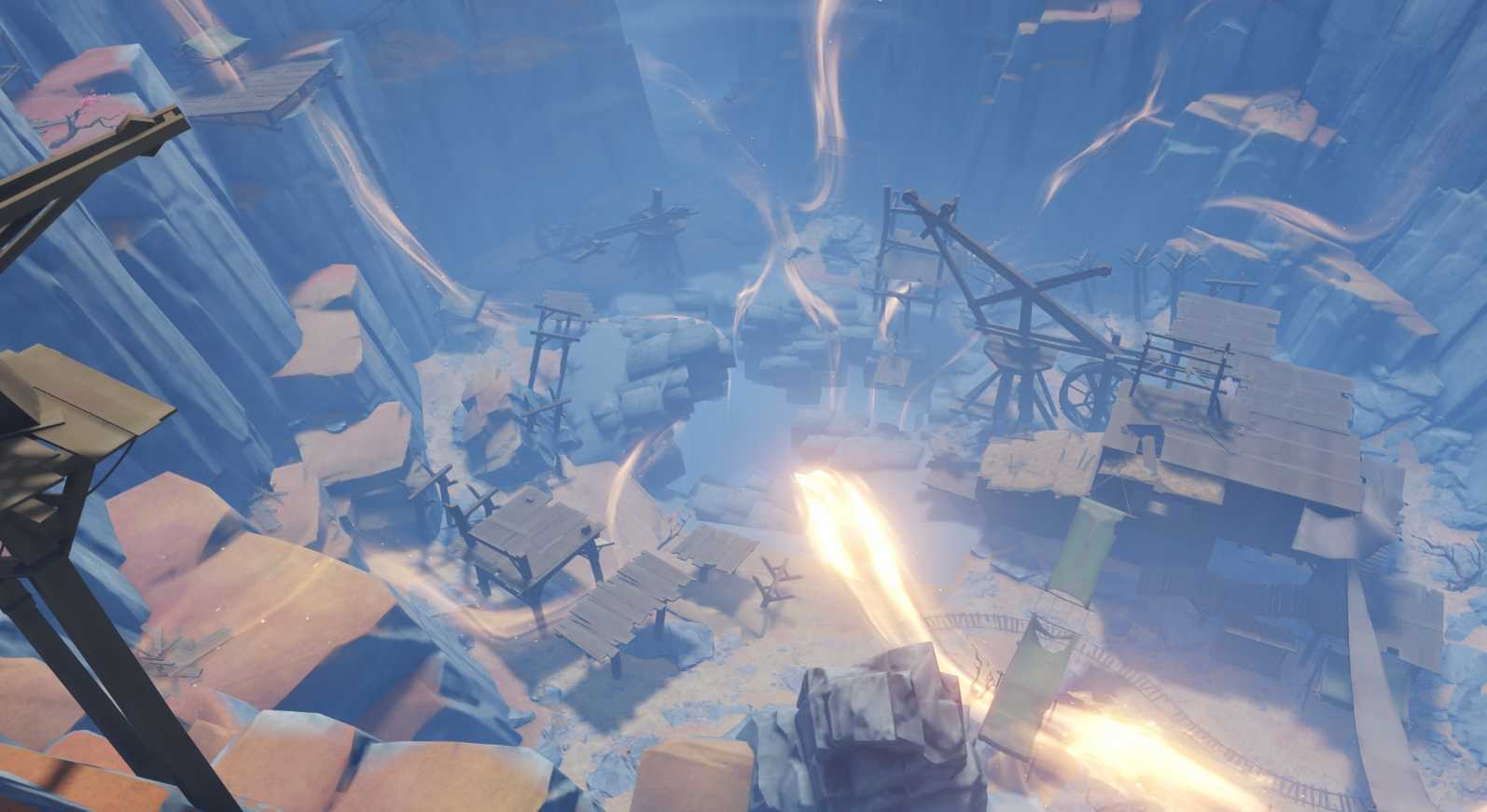 Как только загадка будет решена, близлежащие Грейдеры руин оживут и попытаются убить вас. Уничтожьте эти машины, но не забудьте согреться, используя Жаровни Руин вне арены, как будто вы проигнорируете эффект Чистого холода, он убьет вас. После смерти машины лед в центре этой области расколется, и вы сможете упасть. Вам нужно найти четыре части алого кварца ниже, чтобы разбить осколок в центре. Один готов!