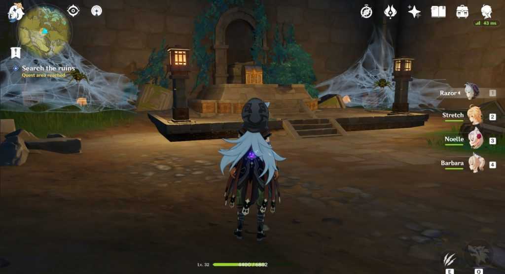После того, как оба глаза будут установлены в статую, используйте навык гео-персонажа, чтобы активировать памятник в центре входа в руины.