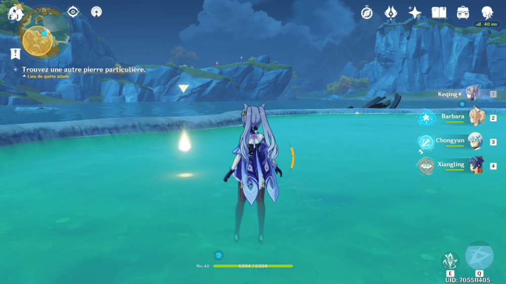 Первая кисть и краска, которые нужно собрать, находятся к востоку от западной путевой точки телепорта в бассейне Лухуа . Найдите дерево и камень к востоку от путевой точки телепорта. Пройдите мимо него и остановитесь на краю обрыва, как показано на изображении выше.