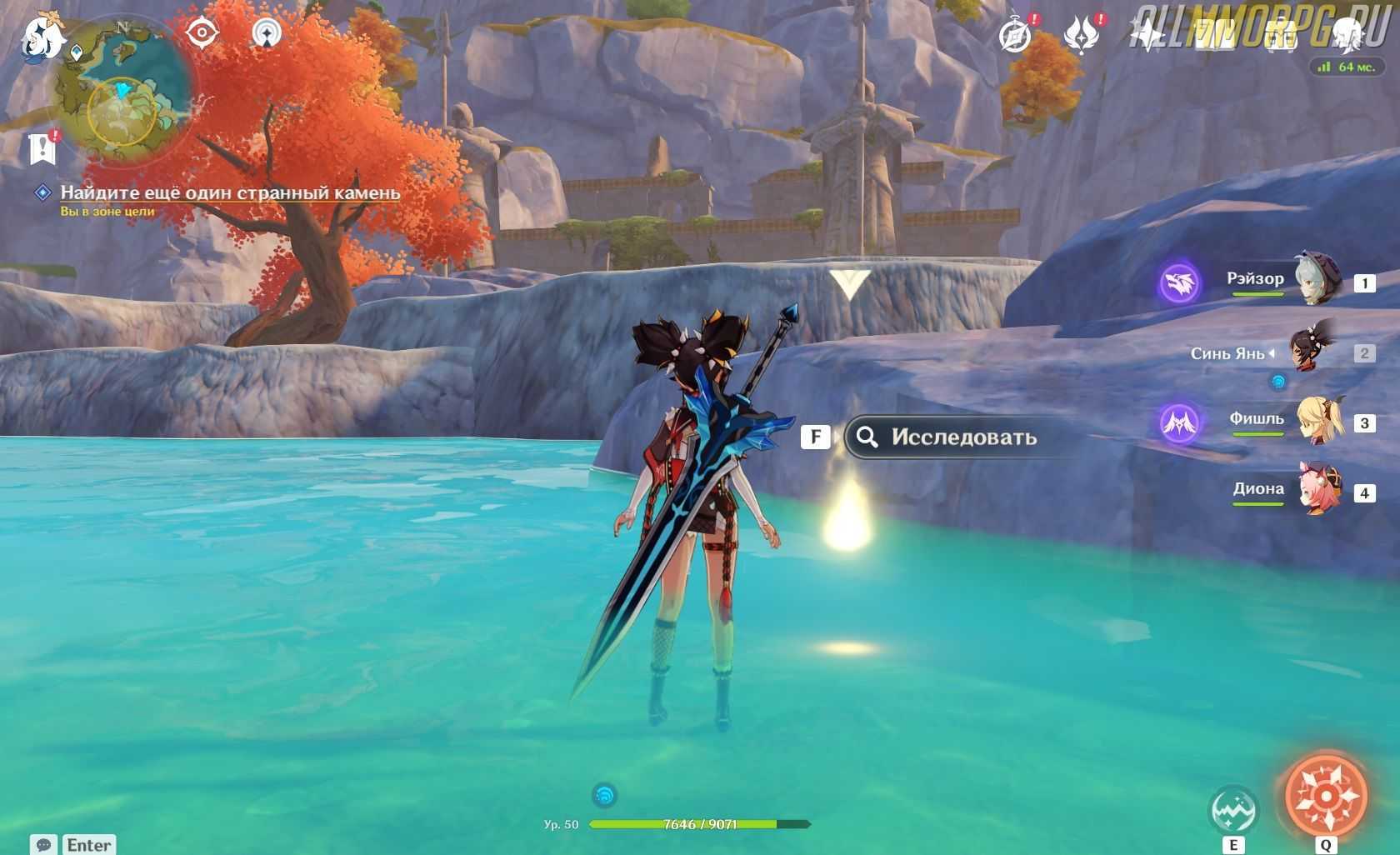 Вставьте странный камень в обе статуи, а затем используйте элемент Geo на монументе элементаля, который теперь доступен. Будьте готовы победить трио поджигателя, крио и мага Гидро Бездны за 90 секунд. Как только это будет сделано, отправляйтесь в руины и откройте ближайший роскошный сундук, чтобы завершить квест.