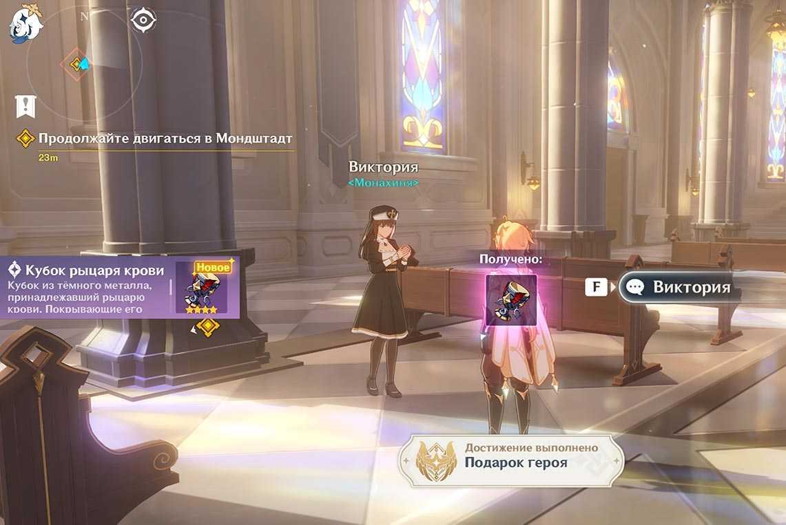 Если вас интересуют любые артефакты из набора «Рыцарь крови», один из них можно получить бесплатно в Мондштадте. Чтобы забрать кубок рыцаря крови, воспользуйтесь инструкцией из этой статьи.