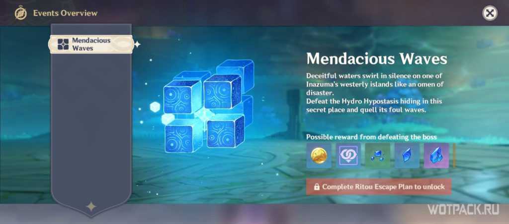 Во время испытания вам придется сразиться со слаймами, гигантскими пиро цветами и маленькими водяными летучими мышами. Ничего особенного, но в последней волне нужно будет победить 5 или 6 гигантских пиро цветов. Советуем использовать взрыв стихий героини, так как он может надолго заморозить противников.