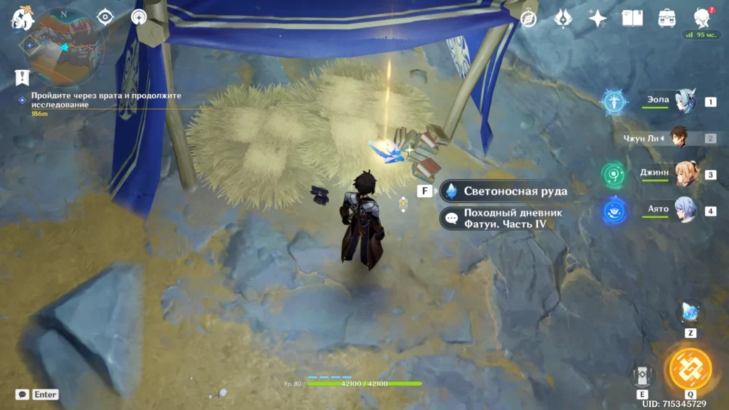 - Отправляйтесь к бассейну Лухуа в регионе Ли Юэ и зажгите костер пиро-персонажем.