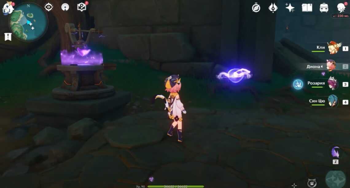 В конце вам останется активировать еще один зонд. Для этого подойдут некоторые Электро герои, в том числе Бэй Доу — просто воспользуйтесь ее элементальным умением рядом с последним зондом. Если у вас нет Бэй Доу или других героев, которые умеют накладывать на себя Электро статус, вы можете получить его от феи, просто дотронувшись до нее. Когда активируете все зонды, вас дадут доступ к драгоценному сундуку. Напомним, что зонд нужно установить в такое положение, чтобы он совпадал со стрелкой у своего основания.