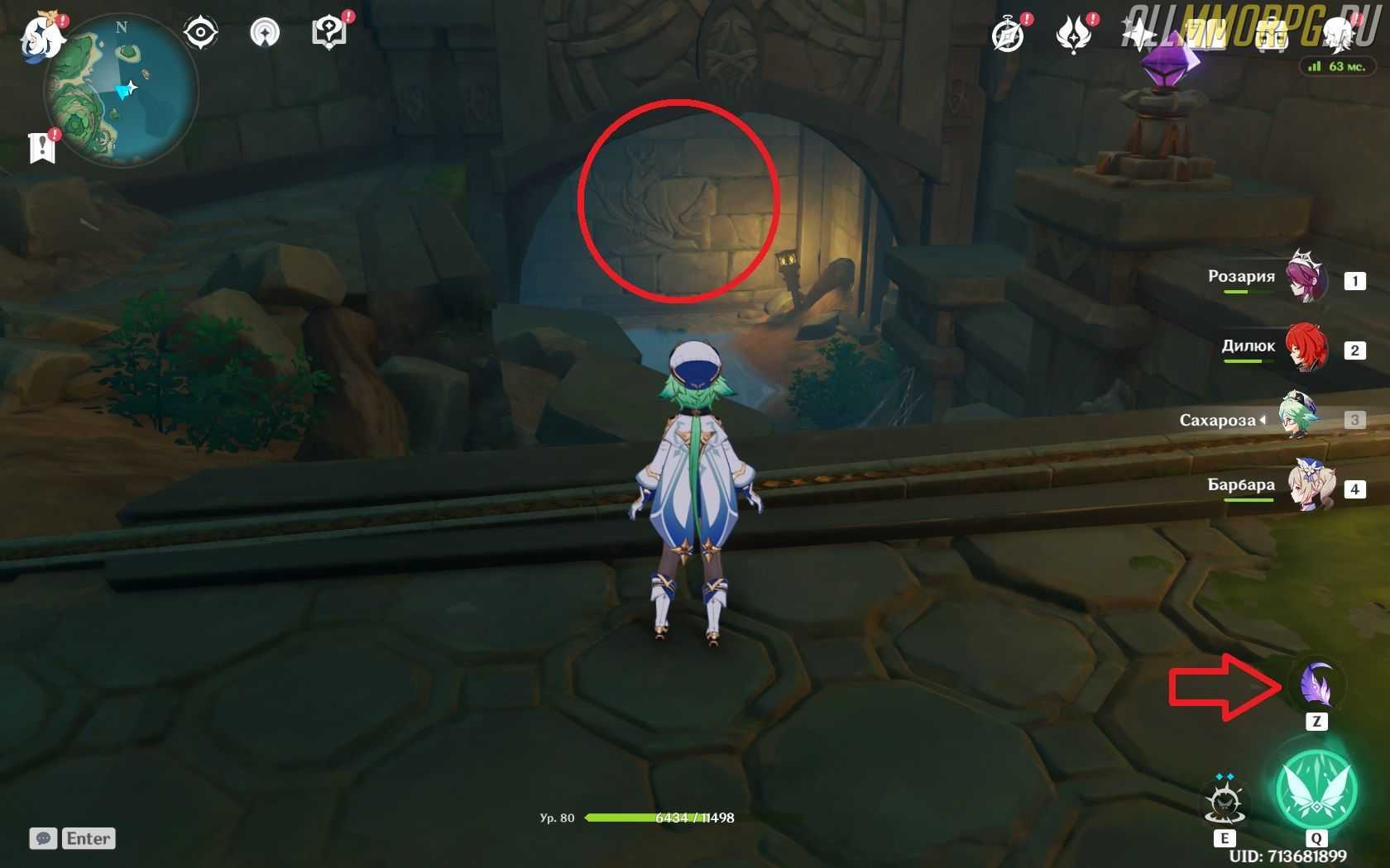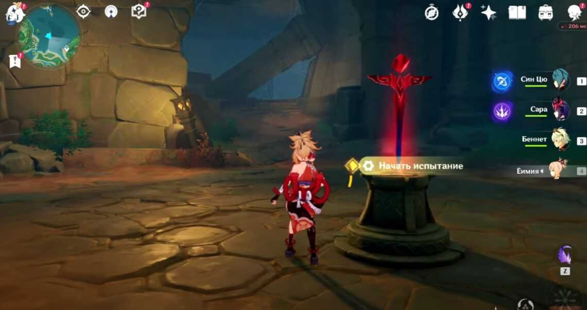 Активируйте фазовые врата и используйте их, чтобы переместиться к четвертому ритуальному камню. Эта загадка имеет ограничение по времени, активировать камни нужно быстро. Предлагаем начать с камня наверху, а в остальные выстрелить из лука с помощью Фишль.