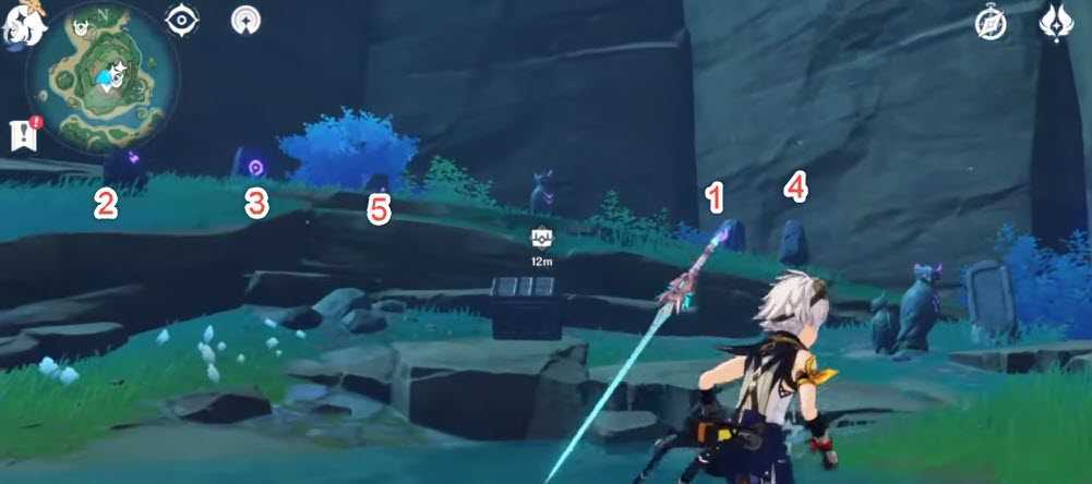 Они имеют ограничение на время активации, действовать необходимо быстро. Для перемещения между монументами можно использовать Электрогранум и Громовые сферы. Активировать колонны можно использованием долгого нажатия элементального навыка Рэйзора и выстрелами в оставшиеся заряженной атакой Фишль или Сары.